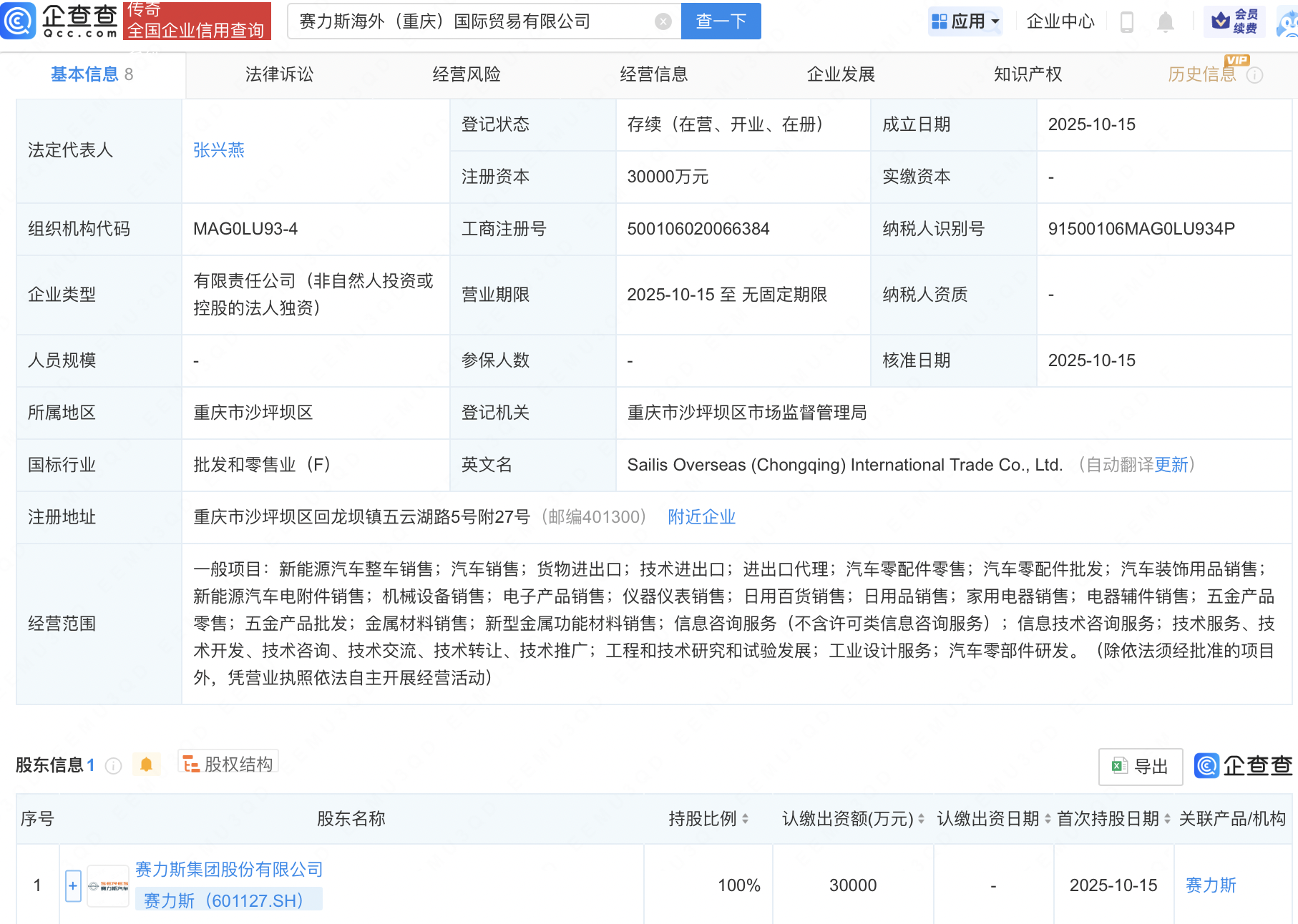 近日可转债配资业务,赛力斯海外(重庆)国际贸易有限公司成立,注册资本3亿元,经营范围包含:新能源汽车整车销售;汽车销售;货物进出口;技术进出口;进出口代理等。企查查股权穿透显示,该公司由赛力斯(601127)全资持股。